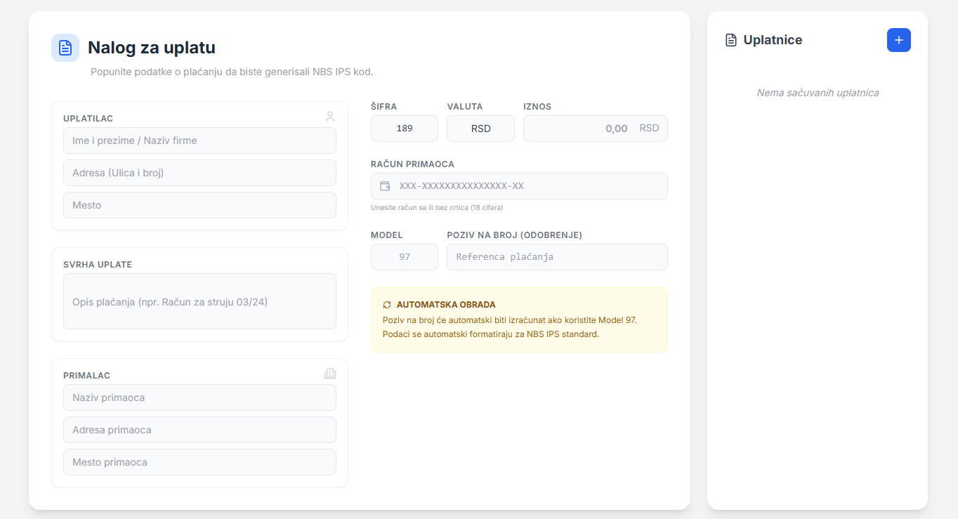 - ubrzava kreiranje uplatnica,